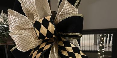 Add a finishing touch to any railing, wreath, garland & More with our Harlequin Bow. Multiple colors available to fit your deaign